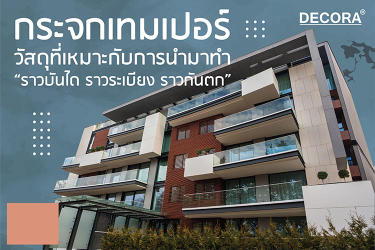 “ราวบันได ราวระเบียง ราวกันตก ที่นำกระจกใสเทมเปอร์มาติดตั้ง จะช่วยเพิ่มมุมมองในการเปิดรับทัศนีย์ภาพต่างๆ ภายในบ้าน และภายนอกบ้านได้มากยิ่งขึ้นค่ะ โดยจะให้ความรู้สึกโอ่อ่า กว้างขวาง หรูหรา และโดดเด่นด้วยรูปลักษณ์โมเดิร์นที่มีความทันสมัย แม้ภายนอกจะเหมือนกระจกธรรมดาทั่วไป แต่คุณสมบัติภายในพิเศษ และมีความแตกต่างออกไป คือ สามารถทนต่อแรงกระแทกได้มากกว่ากระจกธรรมดา ที่มีความหนาเท่ากันมากถึง 4-5 เท่า ที่สำคัญเวลาแตกกระจายจะมีลักษณะคล้ายกับเม็ดข้าวโพดเล็กๆ ที่มีความปลอดภัยสูงกับผู้ใช้งาน