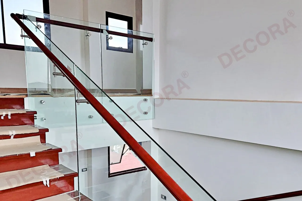 ทางบริษัท ฉอยชิว จำกัดได้เลือกใช้ราวบันได ราวระเบียง ราวกันตกกระจกรุ่น GL-O1 ของทาง DECORA เน้นแสดงความหรูหรา สวยงาม สบายตาของกระจกนิรภัยเทมเปอร์ มาพร้อมกับราวมือจับสเตนเลสที่มีความแข็งแรงและความปลอดภัยเป็นอย่างมาก