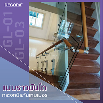 แบบราวบันได กระจกนิรภัยเทมเปอร์ เป็นราวบันไดที่บ้านทั่วไปนิยมใช้กันมาก เพราะเป็นวัสดุที่เข้ากับบ้านได้ทุกแบบ ตั้งแต่ทาวน์โฮมไปจนบ้านเดี่ยวหลังใหญ่ รวมถึงห้างสรรพสินค้า มหาวิทยาลัย ก็ได้รับความนิยมเป็นอย่างมากค่ะ เพราะเข้าได้กับทุกเฉดสีของอาคาร ที่สำคัญแข็งแรง ทนทาน โมเดิร์นสุดๆ เลยนะคะ